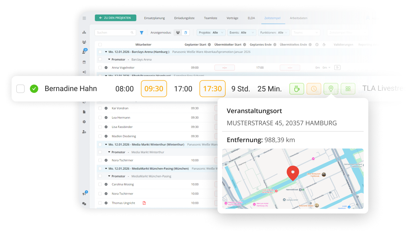 Samen met de doorgestuurde tijden worden ook de geodata verzonden – maar alleen als de medewerker hiervoor toestemming geeft (AVG).